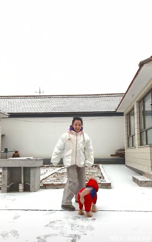 她不买奢侈品,也不追潮流,日常穿着简单舒服。平日没戏拍,就一个人开车去爬山。初雪那天,她还和小狗在院子里撒欢打滚,笑声在冷空气里格外清脆。爬山时,她只带一片面包、一杯红枣水,坐在山腰石凳上,一边啃着干粮,一边看远处云雾缭绕。呼出的白气混着茶香,整个人安静得像一幅画。